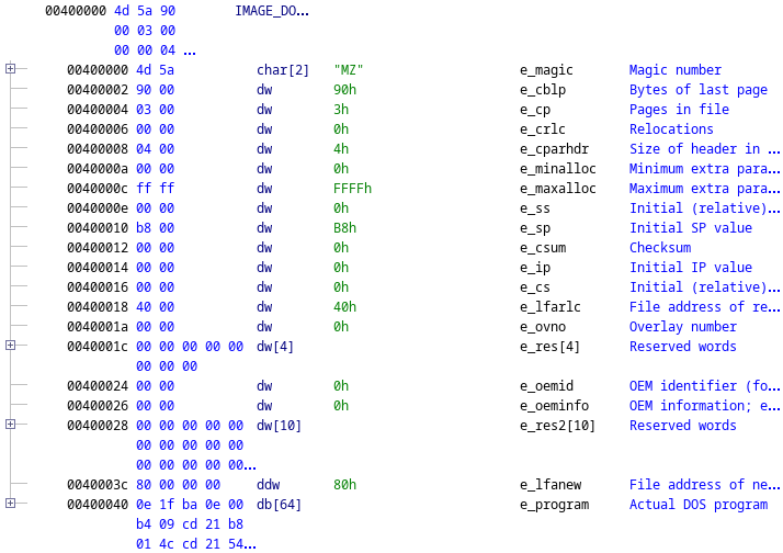 The DOS header & Stub in Ghidra