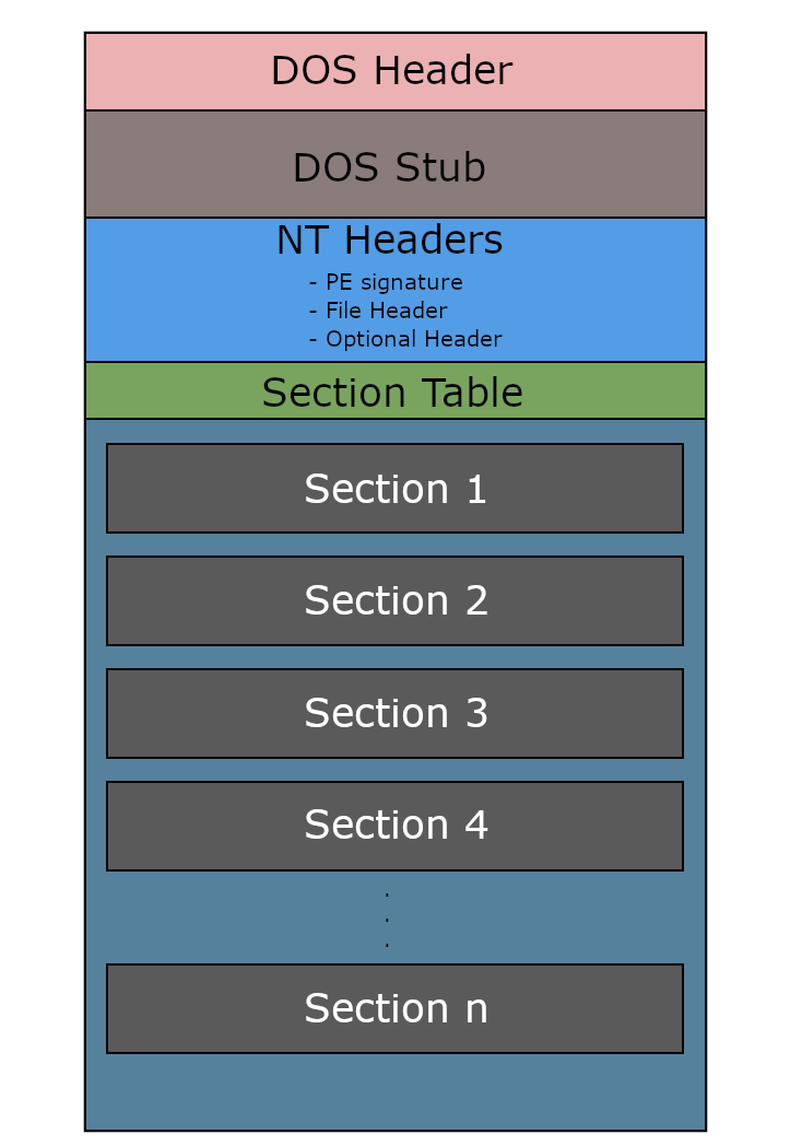 Here’s the overview of the different components of a PE file.