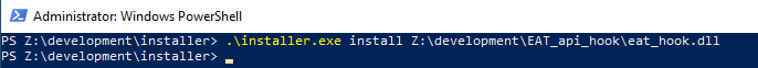 Here’s the code of cocomelonc modified a bit to fit our needs (it’s a install / uninstall exe for our “antivirus” DLL). In short, we just add the DLL to the registry key, and now every new GUI process will have EAT_hook.dll injected.