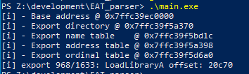 printf("[i] - Export ordinal table @ 0x%llx", exportOrdinalTable);